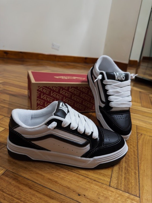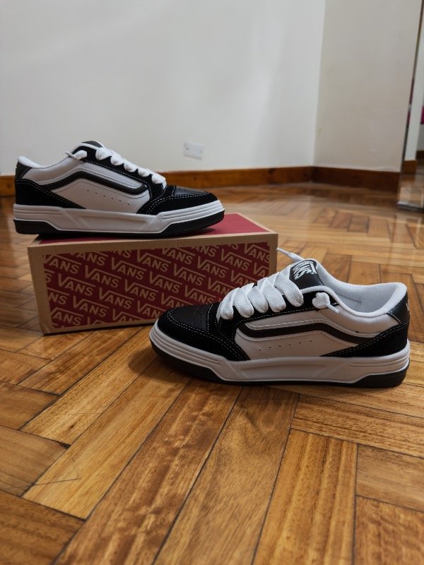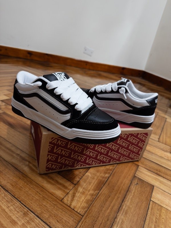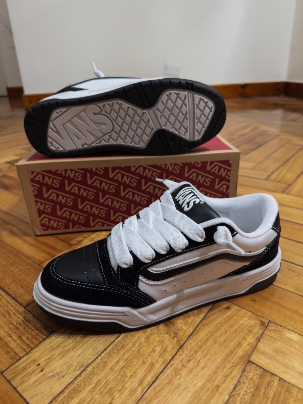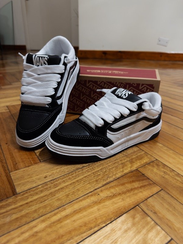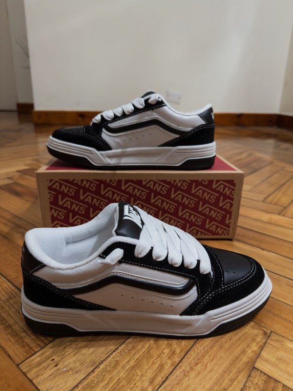 Las Vans Hylane combinan el estilo clásico de la marca con un diseño renovado y más urbano. Con su icónica paleta en negro y blanco, destacan por su silueta robusta, costuras contrastantes y el inconfundible lateral con la franja Vans.